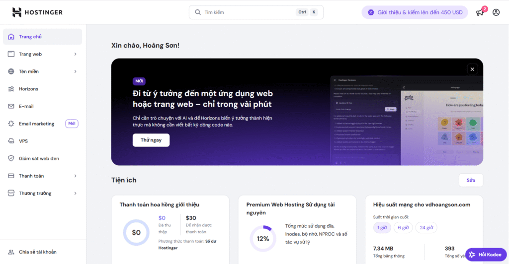 👉 Đăng ký ngay tại Hostinger.vn để nhận ưu đãi giảm giá đặc biệt!
