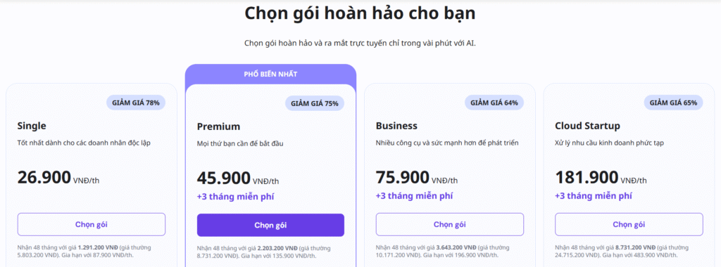 ✔ Có nhiều gói linh hoạt, dễ nâng cấp khi cần